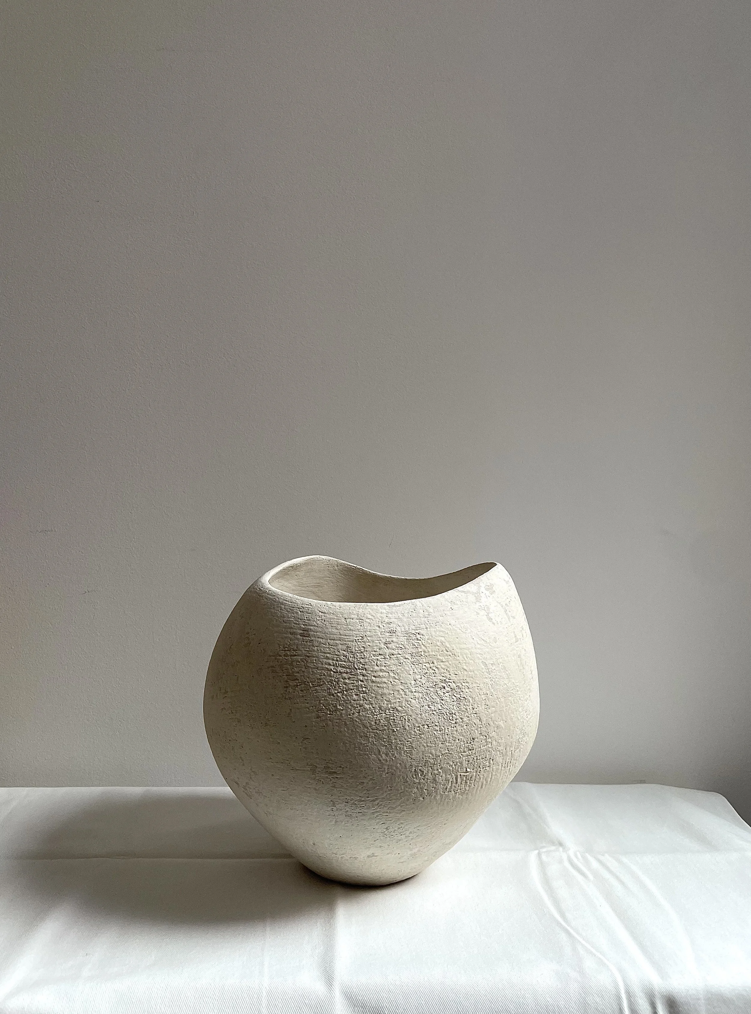 My passion for ceramics embraces asymmetry and the raw beauty of nature. I let the clay guide me, revealing its own unique form.