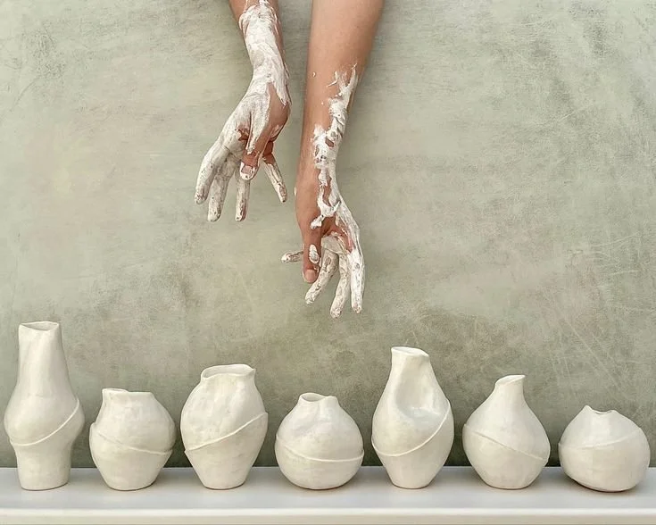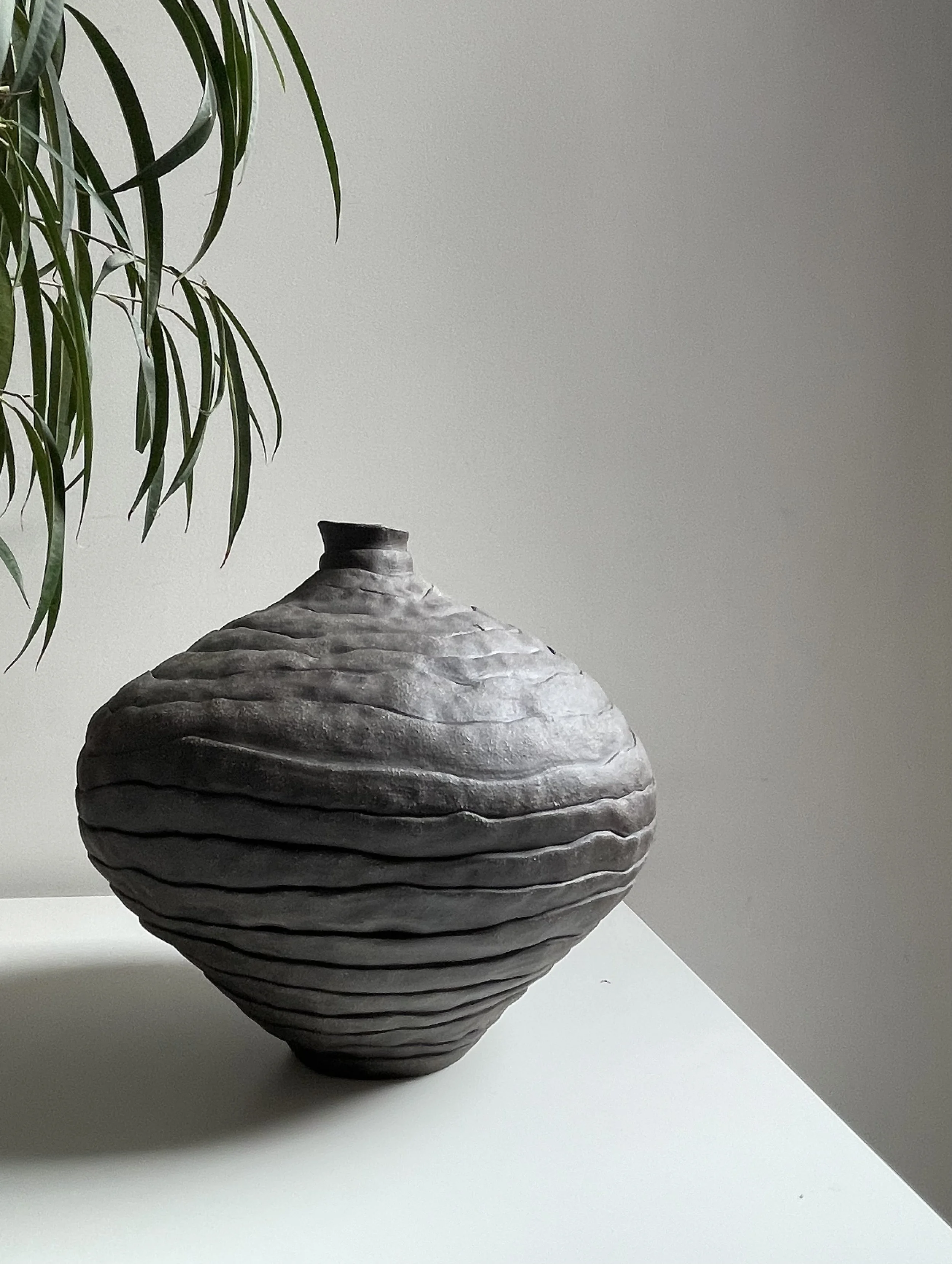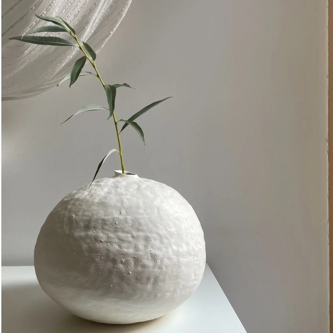 I primarily use my hands to mold my creations, occasionally enlisting wooden tools to subtly texture and detail each piece. The result is simplicity infused with elegance, a testament to organic beauty. My vases are glazed within, ensuring both beauty and function, while some bear a beeswax finish, a unique touch that imbues them with a muted, natural sheen.